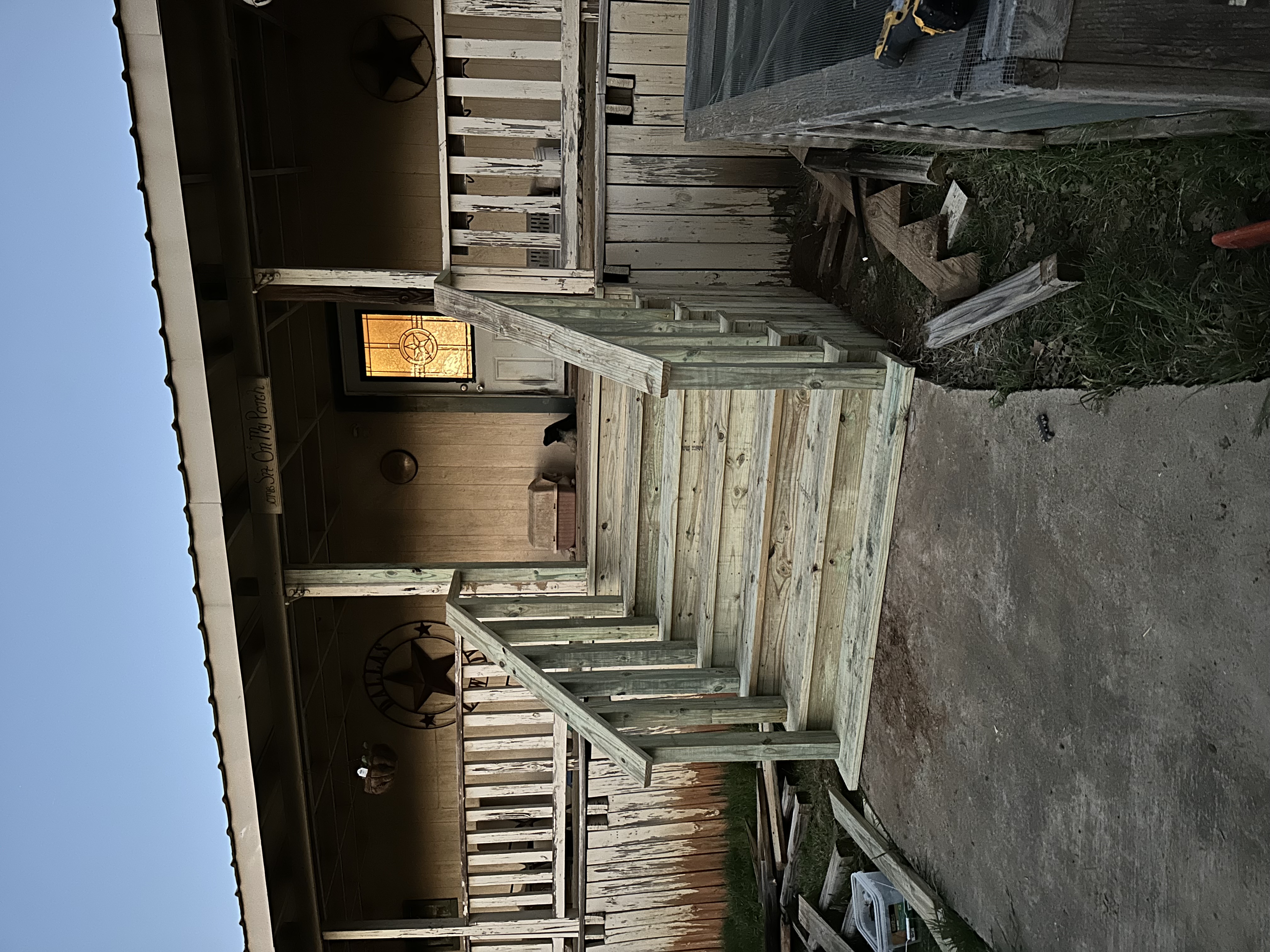• These guys seriously rock. Found them on Marketplace. We needed a strange deck configuration for a back door landing that will also be a spot for our outdoor sauna. They showed up super prepared, with all the materials needed. Confirmed my design before starting. Finished it in less than four hours. Cleaned all the debris up and took it with them. We love our new deck!! Price was reasonable as we had to other bids. Very professional. So impressed. We will be calling them again for two more deck projects we have in the future.